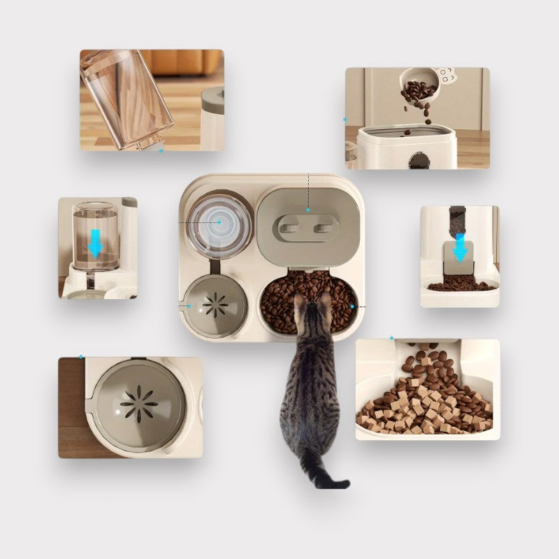 COMEDERO AUTOMÁTICO PARA GATOS - Sistema 2 en 1 con Dispensador de Agua | 10 Días de Autonomía Total | Libertad para Ti, Cuidado Perfecto para Tu Gato